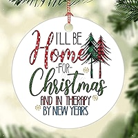 Amazon Com I Ll Be Home For Christmas And In Therapy By New Years White Ceramic Ornament Round Ceramic Xmas Holiday Decor Keepsake Merry Christmas Ornament Anniversary Housewarming Gift Santa Reindeer Sleigh Home
